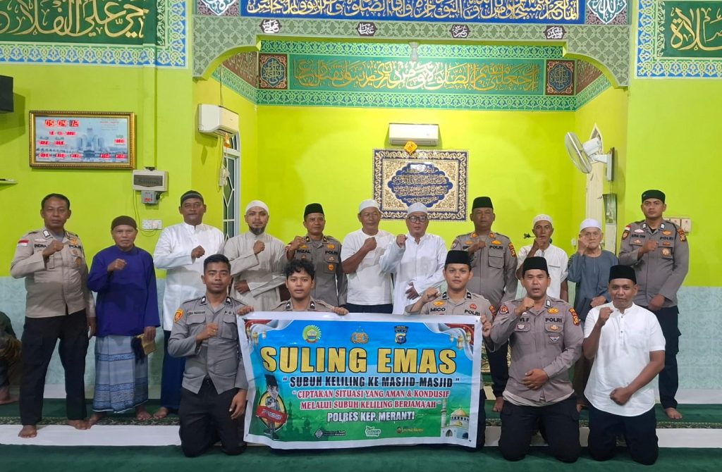 detik24jam. Meranti – Dalam upaya mempererat silaturahmi dengan masyarakat sekaligus menjaga keamanan dan ketertiban di lingkungan rumah ibadah, Polres Kepulauan Meranti, Polda Riau, terus menggiatkan program Subuh Keliling ke Masjid-Masjid (Suling Emas).