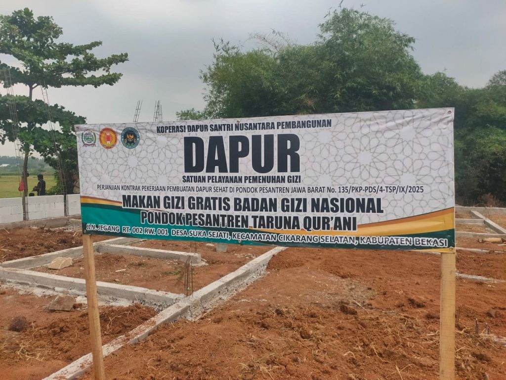 DETIK24JAM.COM – BEKASI | CV. Mustika Wijaya Kusuma, selaku kontraktor pelaksana, tengah gencar mengerjakan proyek strategis pembangunan fasilitas Dapur Satuan Pelayanan Pemenuhan Gizi (Dapur SPPG) atau Dapur Sehat di Pondok Pesantren Taruna Qur’ani, Bekasi. Proyek senilai Rp 1,4 Miliar ini merupakan inisiatif kolaboratif antara Koperasi Dapur Santri Nusantara (KDSN) dan Badan Gizi Nasional (BGN) untuk mendukung penuh program pemerintah, khususnya Program Makan Bergizi Gratis.