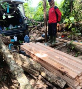 “Petugas menemukan jejak kendaraan roda empat di dalam kawasan Taman Nasional Tesso Nilo. Setelah dilakukan penelusuran, tim mendengar suara mesin chainsaw dan berhasil mengamankan satu orang pelaku yang sedang mengolah kayu secara ilegal,” ujar Khairul Amri.