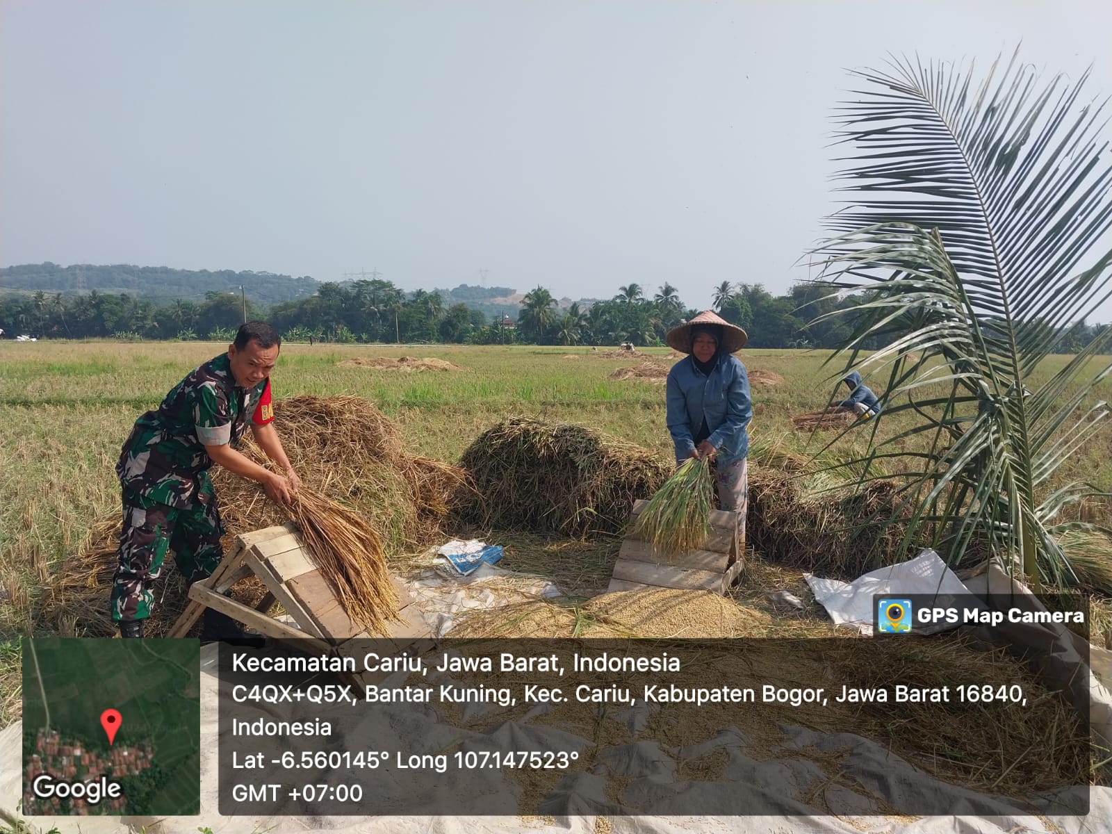 Lanjutnya – Alhamdulillah saya pantau untuk panen raya petani Desa Bantarkuning cukup bagus hasilnya , tadi saya berbincang dengan para petani rata – rata menurut para petani yang saat ini panen untung dan ini berkat dukungan pemerintah dan TNI Koramil 0621-08 Cariu khususnya. Kami akan terus mensupport sehingga program ketahanan pangan ini terus berjalan dengan baik dan mencapai kesejahteraan masyarakat petani, ketika petani sejahtera maka bangsa ini akan menjadi bangsa yang swasembada pangan.”Tukas Pelda Deny.