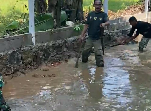 Kompak Kades Sukasirna Bersama Warga Gotong Royong, Bersihkan Saluran Air