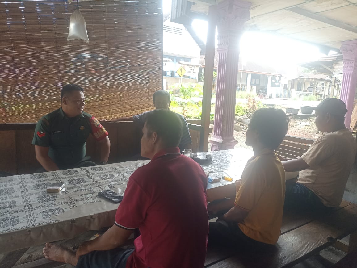 LTapteng _ Babinsa koramil 04/Pinangsori Kodim 0211/TT Koptu Roni Nasution melaksanakan komunikasi sosial (komsos) di warung pak Cappin di Link II,Kelurahan Lumut, Kecamatan Lumut, Kabupaten Tapanuli Tengah.