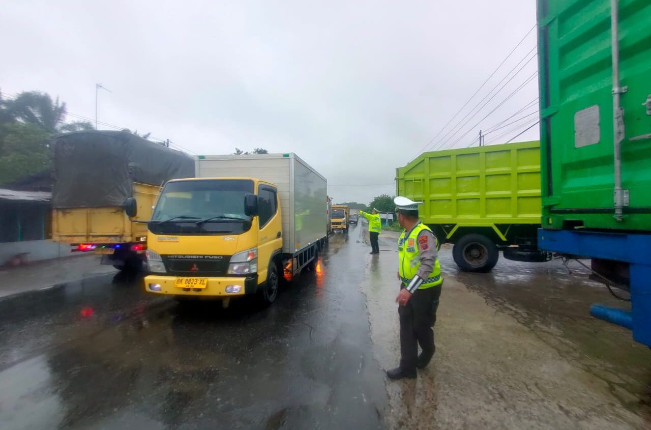 Personil Sat Lantas Polres Batu Bara Atasi Kemacetan di SPBU Sumber Padi, Arus Lalu Lintas Kembali Lancar
