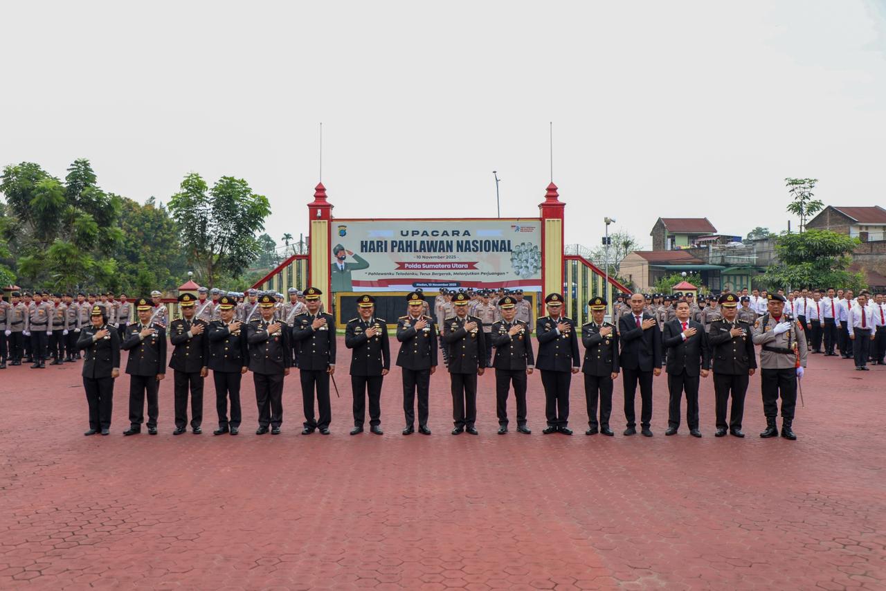 Dalam suasana khidmat dan penuh semangat kebangsaan, Kepolisian Daerah Sumatera Utara (Polda Sumut) melaksanakan Upacara Peringatan Hari Pahlawan Tahun 2025, di Lapangan KS Tubun Mapolda Sumut, Senin (10/11/2025).