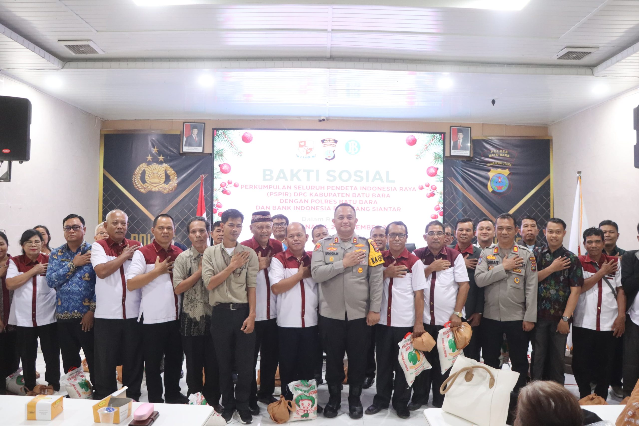 Polres Batu Bara dan Bank Indonesia Cabang Pematang Siantar bekerja sama memberikan bantuan sosial (bansos) kepada 200 masyarakat Kabupaten Batu Bara dalam rangka menyambut Natal 2025. Kegiatan ini dilaksanakan di Aula Sarja Arya Racana Polres Batu Bara, Senin (01/12/2025).