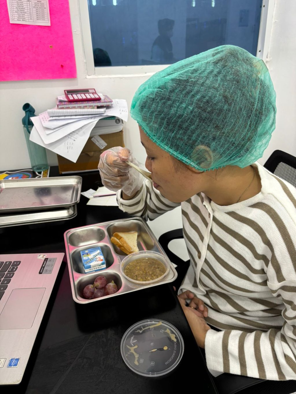 Dalam kegiatan ini, petugas melakukan pemeriksaan makanan menggunakan bahan reagen kimia dan organoleptik, termasuk pemeriksaan nitrit, nitrat, dan formaldehid. Hasil pemeriksaan menunjukkan bahwa makanan yang disajikan dalam keadaan aman.