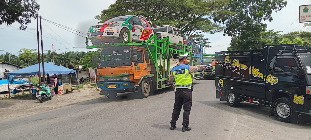 Pengaturan lalu lintas dilakukan di beberapa titik, antara lain Jalinsum Simp 4 Tanah Merah, Simp SMP Neg 1.50, Simp MTS 50, Jalinsum Simp 50, dan Jalinsum Simpang Sei Bejangkar, Kecamatan Talawi.