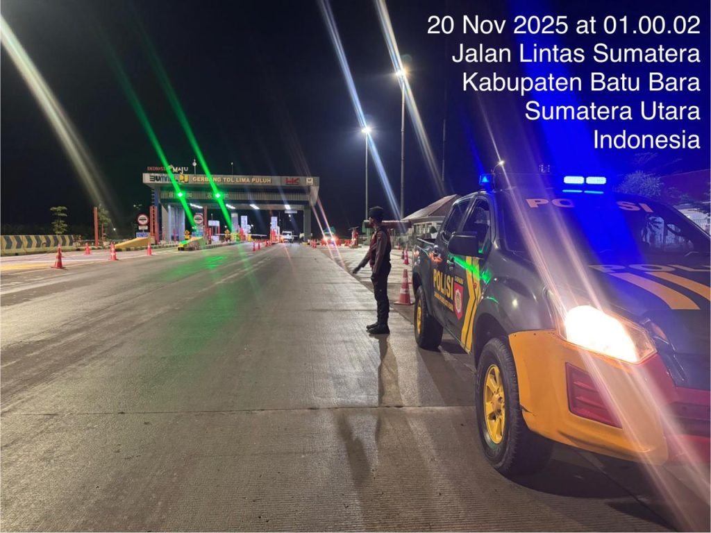 Patroli ini dipimpin oleh AIPDA DEDI ISKANDAR SH dan BRIPDA DIMAS SETIAWAN, dengan menggunakan 1 unit kendaraan R-4 Sat Samapta Isuzu D-Max. Rute patroli meliputi Exit Tol Lima Puluh.