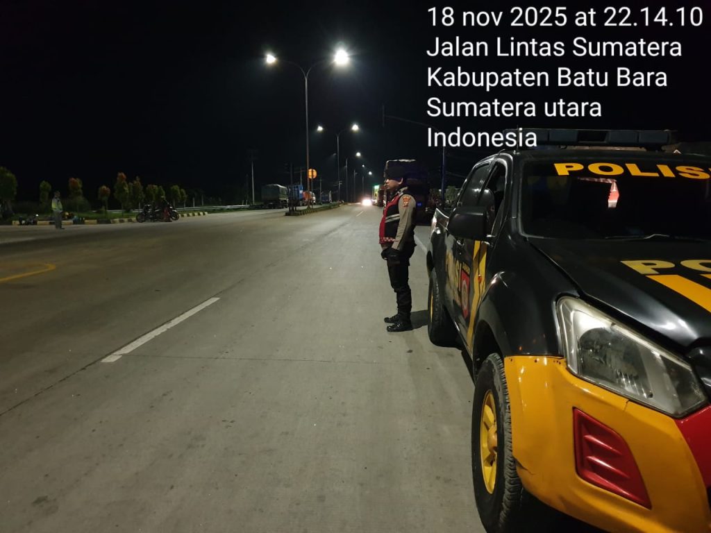 Personil Polres Batu Bara melaksanakan giat patroli roda-4 di wilayah hukum Polres Batu Bara, Selasa (18/11/2025). Kegiatan ini bertujuan untuk mengantisipasi terjadinya begal, balap liar, tindak pidana 3C (Curat, Curas, Caper), perjudian, prostitusi, dan kejahatan lainnya di wilayah hukum Polres Batu Bara.