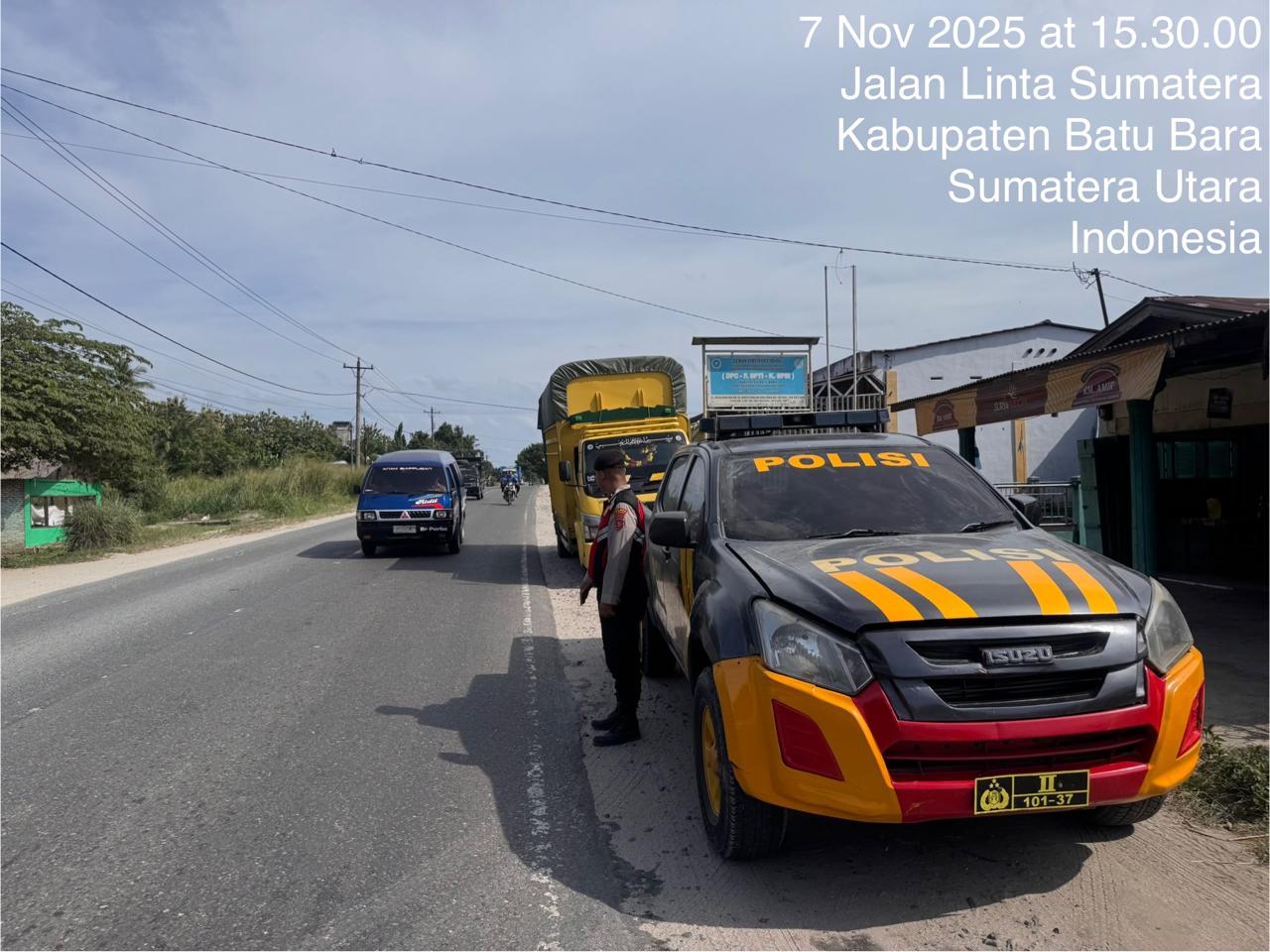 Personil Polres Batu Bara melaksanakan patroli kota roda-4 guna mengantisipasi terjadinya 3C dan kejahatan lainnya di wilayah hukum Polres Batu Bara, pada Jumat, 7 November 2025, pukul 15.30 WIB.