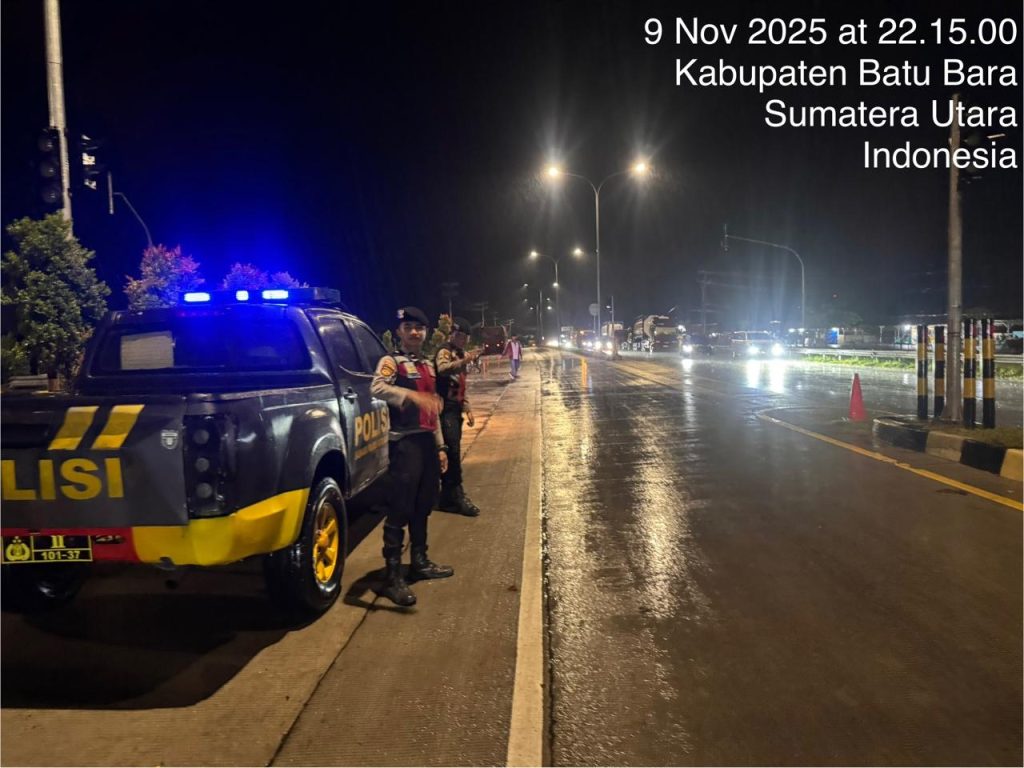 Personil Polres Batu Bara melaksanakan patroli roda-4 di wilayah hukum Polres Batu Bara, pada Minggu, 9 November 2025, pukul 22.00 WIB s/d selesai.