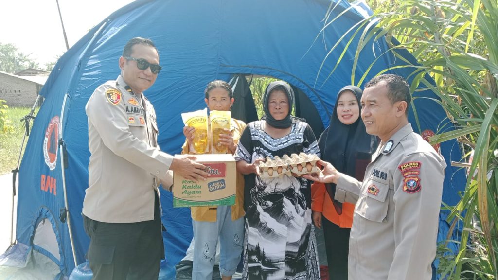 Sat Binmas Polres Batu Bara melakukan kegiatan trauma healing dan memberikan bantuan sosial kepada masyarakat yang terdampak bencana banjir di Desa Empat Negeri dan Desa Kwala Gunung, Kecamatan Datuk Lima Puluh, Kabupaten Batu Bara, Senin (01/12/2025).