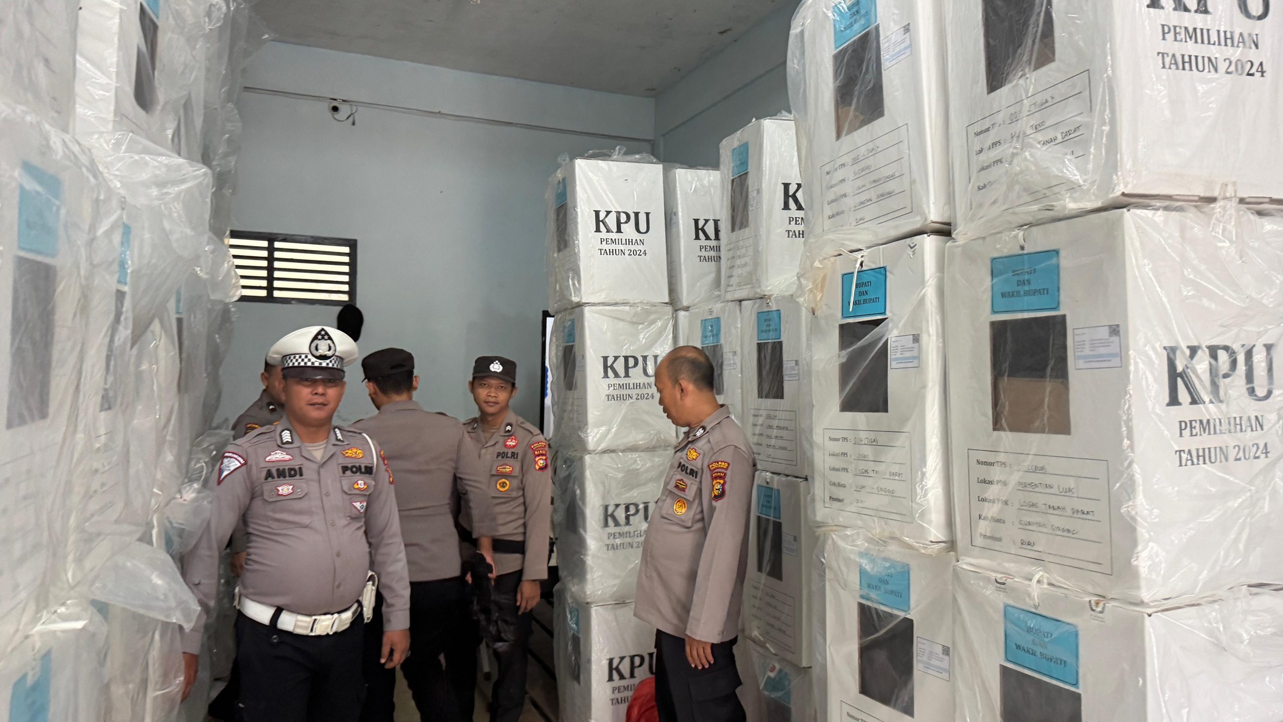 Polres Kuansing Amankan Gudang Logistik KPU Dalam Rangka Operasi Mantap Praja Lancang Kuning 2024