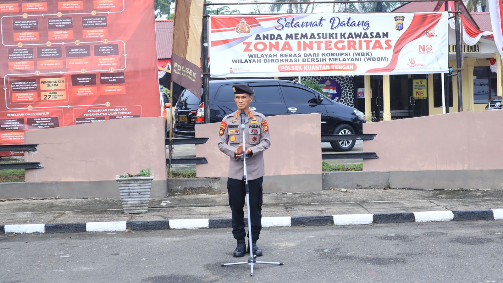 Kapolres Kuansing, AKBP Pangucap Priyo Soegito, S.I.K., M.H., dalam arahannya mengucapkan “Selamat datang kepada rekan-rekan yang melaksanakan BKO, mengingatkan agar semua personel menjalankan tugas sesuai dengan ploting yang telah ditentukan, serta menekankan pentingnya menjadikan tugas ini sebagai amal ibadah. Kapolres juga menginformasikan bahwa pada pukul 18.00 WIB akan dilaksanakan apel konsolidasi, dan mengajak semua pihak untuk menyatukan tujuan demi suksesnya pengamanan event nasional ini,” ujar Kapolres.
