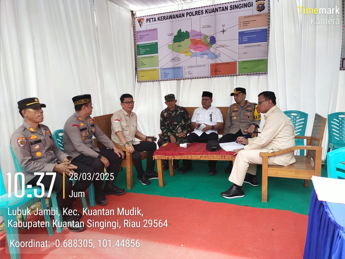 KUANTANSINGINGI,– Polres Kuansing menyelenggarakan kegiatan kunjungan oleh Forkopimda Kabupaten Kuansing ke Pos Pam Ketupat Lancang Kuning Tahun 2025 yang berlokasi di Desa Kasang, Kecamatan Kuantan Mudik, Kabupaten Kuansing Pada hari Jumat (28/3/2025) pukul 10.00 WIB. Kunjungan ini merupakan bagian dari rangkaian kegiatan Ops Ketupat Lancang Kuning 2025 untuk memastikan kesiapan dan keamanan pelaksanaan Pos Pelayanan Lebaran.
