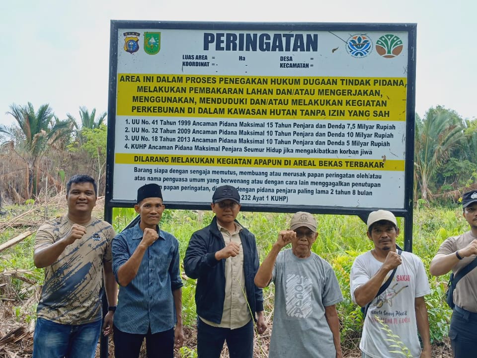 Pemasangan plang tersebut dilakukan di Dusun 2 Desa Tenan, pada titik lokasi yang sebelumnya diketahui terbakar pada Juli lalu. Pemasangan ini bertujuan sebagai tanda bahwa area tersebut masih dalam proses penegakan hukum terkait dugaan tindak pidana kebakaran hutan dan lahan (karhutla).