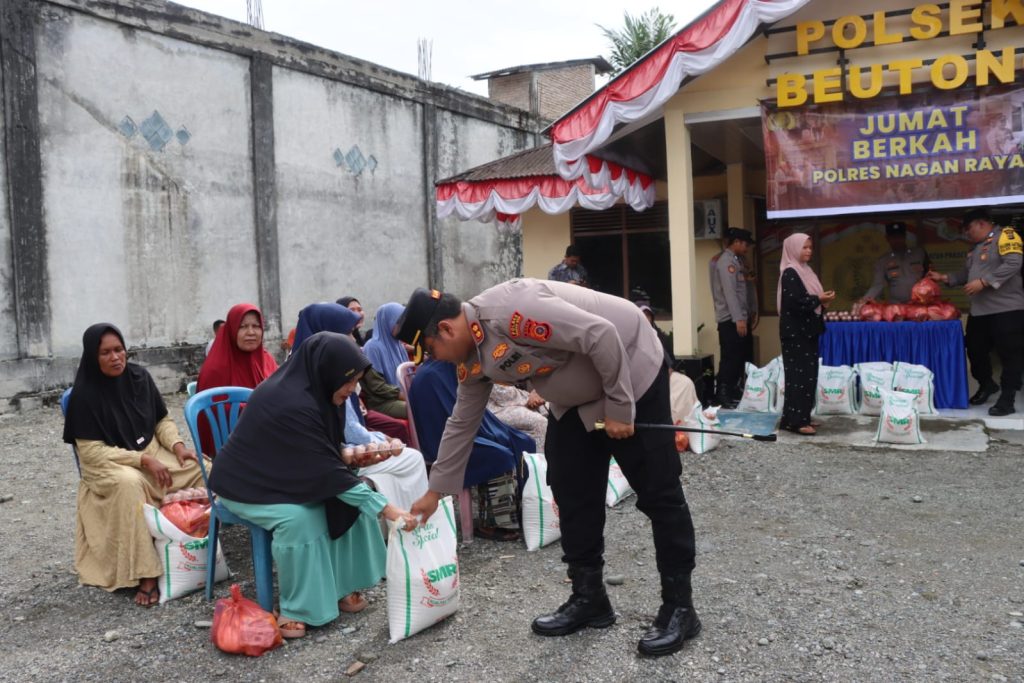 Nagan Raya – Dalam upaya memperkuat hubungan Polri dengan masyarakat serta meringankan beban warga kurang mampu, Polres Nagan Raya kembali melaksanakan kegiatan Jumat Berkah pada Jumat, 14 November 2025. Kegiatan yang dipusatkan di Polsek Beutong, Kabupaten Nagan Raya ini berjalan khidmat dan penuh kehangatan.