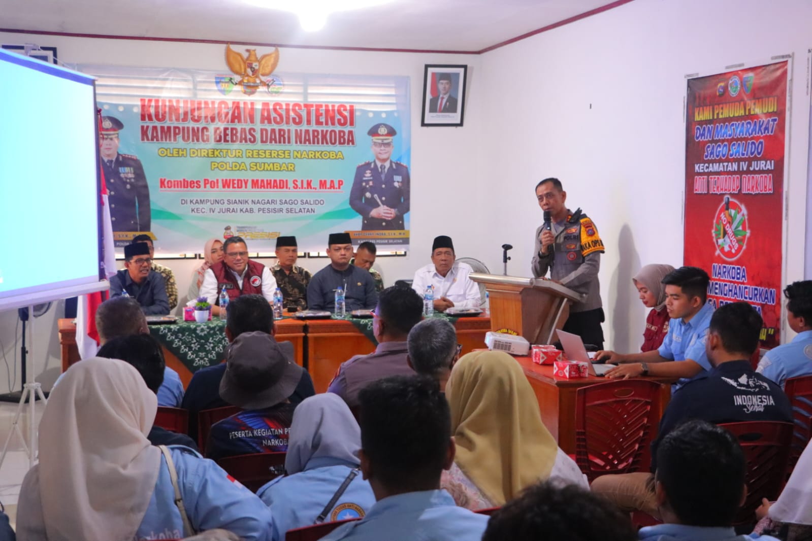 Detik24jam.com|Pessel – Polres Pesisir Selatan menjadi tuan rumah dalam kegiatan kunjungan asistensi Direktur Reserse Narkoba Polda Sumatera Barat, Kombes Pol Wedy Mahady, S.I.K., M.A.P., ke Posko Kampung Bebas dari Narkoba di Kampung Sianik, Nagari Sago Salido, Kecamatan IV Jurai. Kegiatan yang berlangsung pada Jumat, 21 November 2025, pukul 10.00 WIB ini, memperkuat upaya mitigasi dan pencegahan penyalahgunaan narkoba di tingkat komunitas.