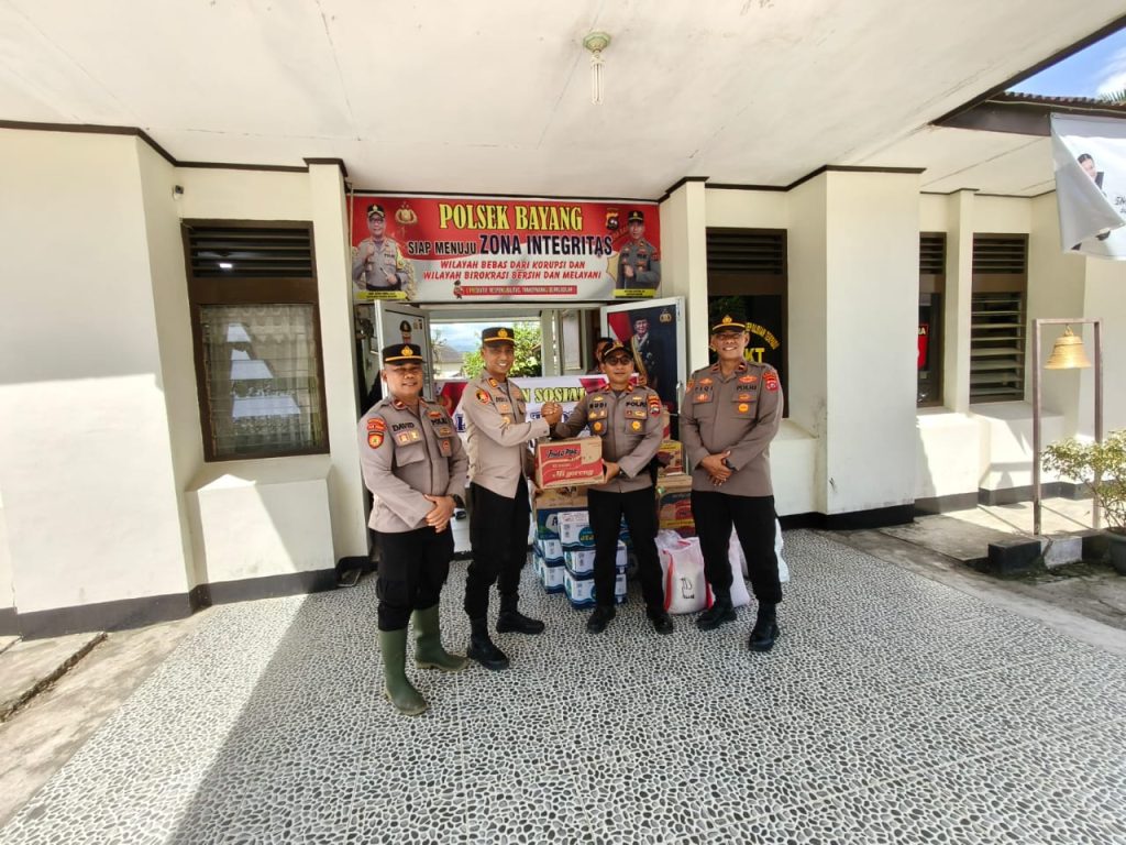Bantuan yang diberikan berupa sembako dan diterima langsung oleh Kapolsek Bayang Iptu Budi Saputra, S.H dan Waka Polsek Ipda David Candra,S.H, Bantuan tersebut diharapkan dapat meringankan beban warga yang terdampak banjir di wilayah hukum Polsek Bayang