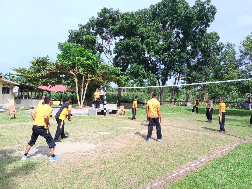 Kapolsek Indrapura, AKP Reynold Silalahi, S.H., memimpin kegiatan olahraga volly bersama personil Polsek Indrapura, pada Jumat, 7 November 2025, pukul 09.00 WIB.