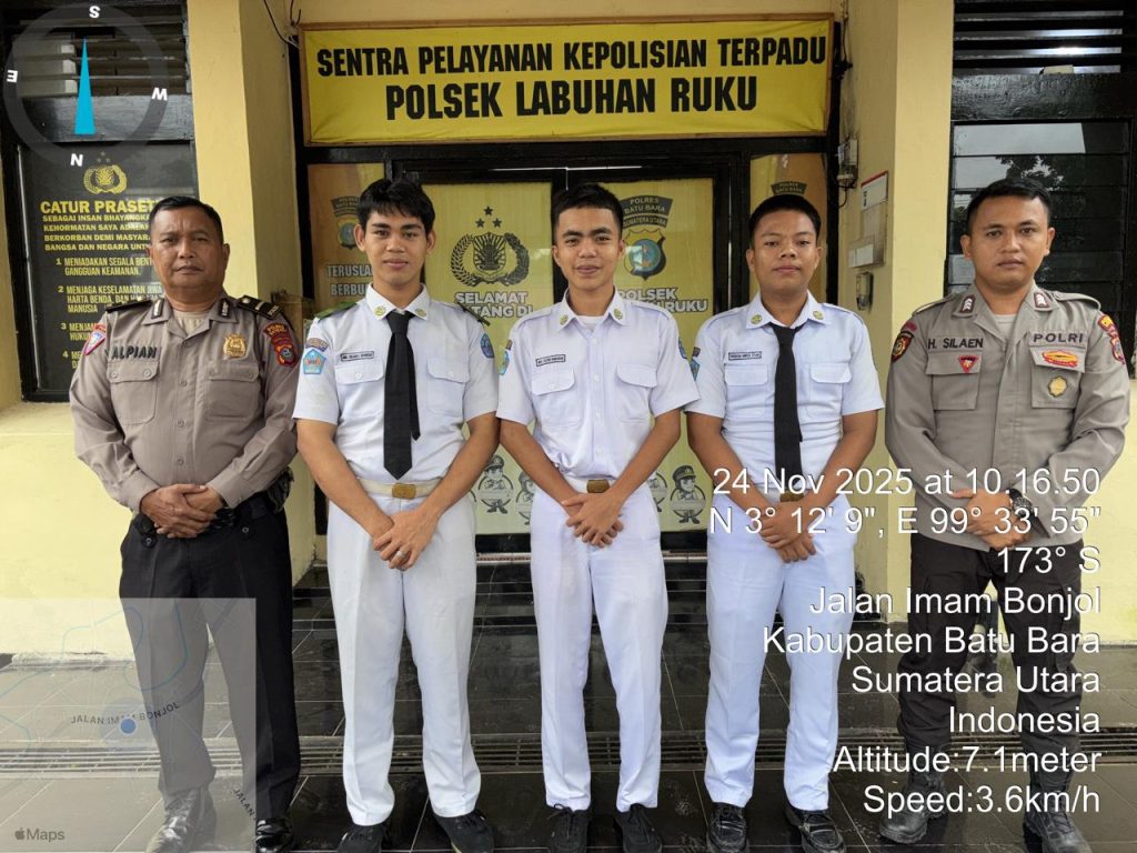 Kanit Binmas Polsek Labuhan Ruku, IPDA Alpian MS, menerima kunjungan dari siswa SMK 1 Talawi, Senin (24/11/2025) pagi. Kunjungan ini dalam rangka tugas dari sekolah untuk mengetahui proses penegakan hukum dari kepolisian terkait pelaku tindak pidana kejahatan.