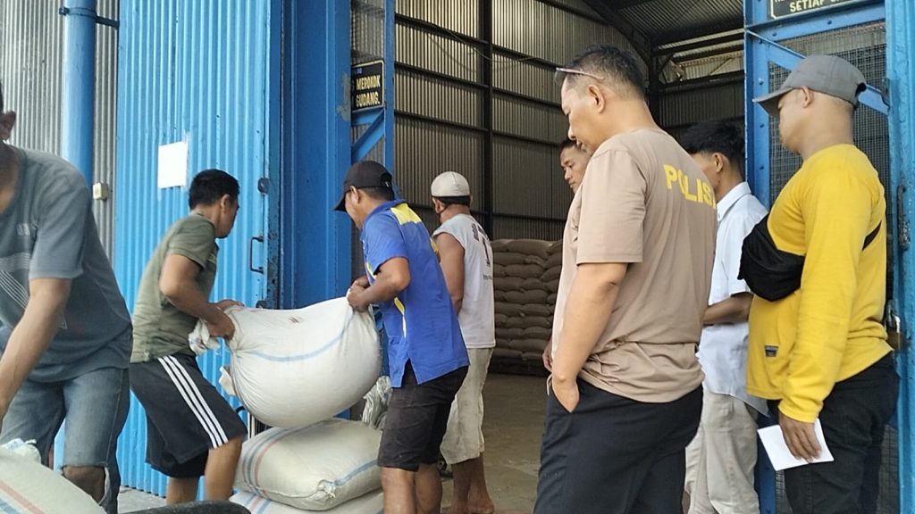 Kapolsek Lima Puluh, AKP SALOMO SAGALA, SH, bersama anggota melakukan pendampingan terhadap petani jagung binaan, Senin (01/12/2025). Petani jagung tersebut menjual hasil panennya ke Bulog Cabang Asahan.