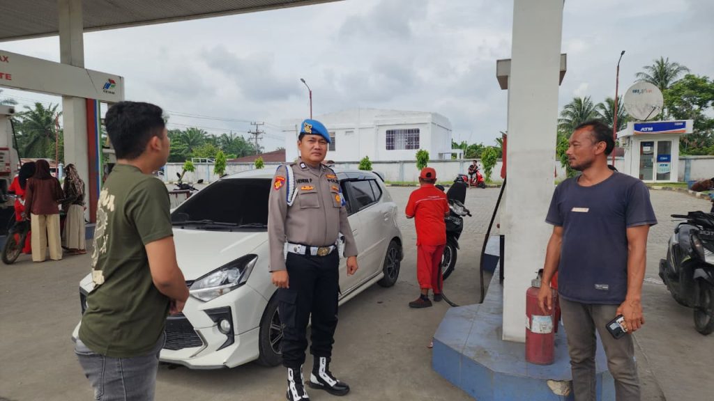 Personil Polsek Lima Puluh melakukan patroli dan monitoring di SPBU Desa Sumber Padi Kec. Lima Puluh, Minggu (07/12/2025) pukul 09.00 WIB.