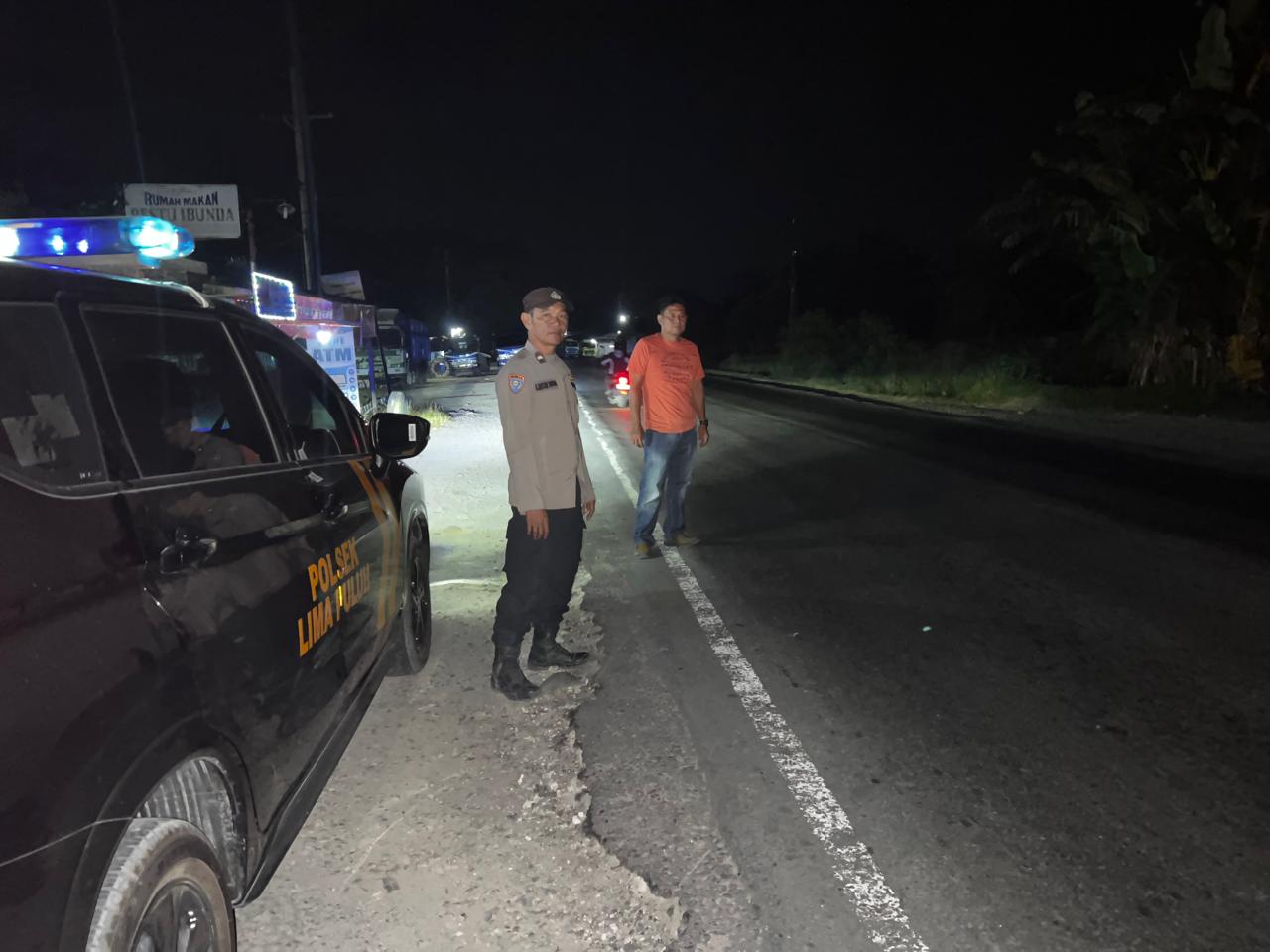 Personil Polsek Lima Puluh melaksanakan patroli mobile guna mengantisipasi tawuran, geng motor, dan tindak kejahatan lainnya di wilayah hukum Polsek Lima Puluh, pada Jumat, 7 November 2025, pukul 22.30 WIB.
