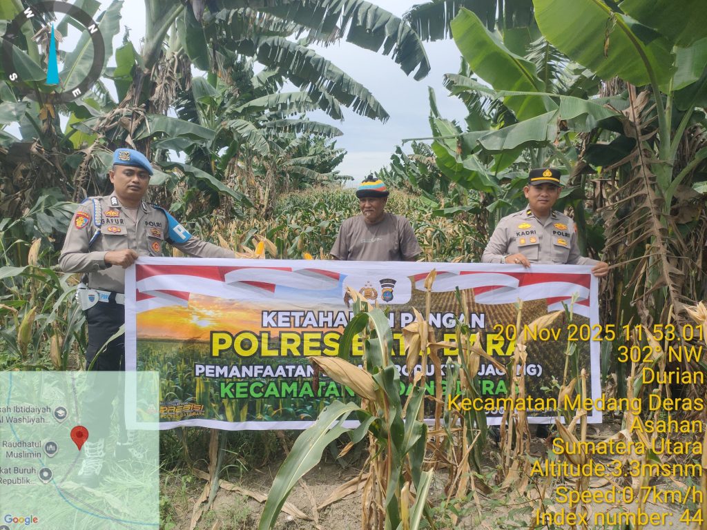 Polsek Medang Deras melalui Kanit Binmas, IPDA MUHAMMAD KADRI, S.H, bersama personel lainnya, melaksanakan kegiatan penanaman jagung dalam rangka mendukung program ketahanan pangan pemerintah. Kegiatan ini berlangsung di Desa Durian, Kecamatan Medang Deras, Kabupaten Batu Bara, pada Kamis (20/11/2025).