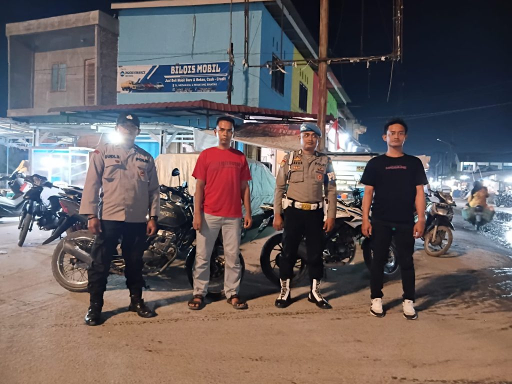 Personil Polsek Medang Deras melaksanakan patroli malam untuk mengantisipasi kejahatan, geng motor, begal, dan tauran antar remaja di wilayah hukum Polsek Medang Deras pada Minggu (19/10/2025) malam.