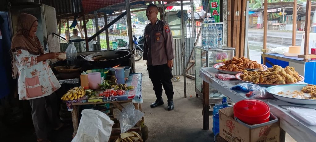 Personil Polsek Medang Deras, BRIPKA Agus Setiadi, melaksanakan kegiatan sambang dan cooling system di Warung Buk Ani, Jalan Aces Road Inalum, Desa Lalang, Kecamatan Medang Deras, Kabupaten Batu Bara, Senin (24/11/2025).
