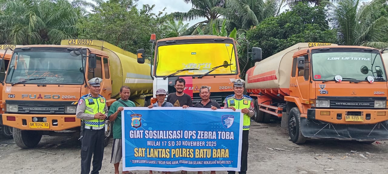 Personil Sat Lantas Polres Batu Bara melaksanakan kegiatan Dikmas Lalu Lintas di Jalinsum Poll Mobar, Desa Mekar Baru, Rabu (26/11/2025) pukul 10.00 WIB s/d selesai. Kegiatan ini merupakan bagian dari Operasi Zebra Toba 2025 dan bertujuan untuk meningkatkan kesadaran masyarakat akan pentingnya keselamatan berlalu lintas.