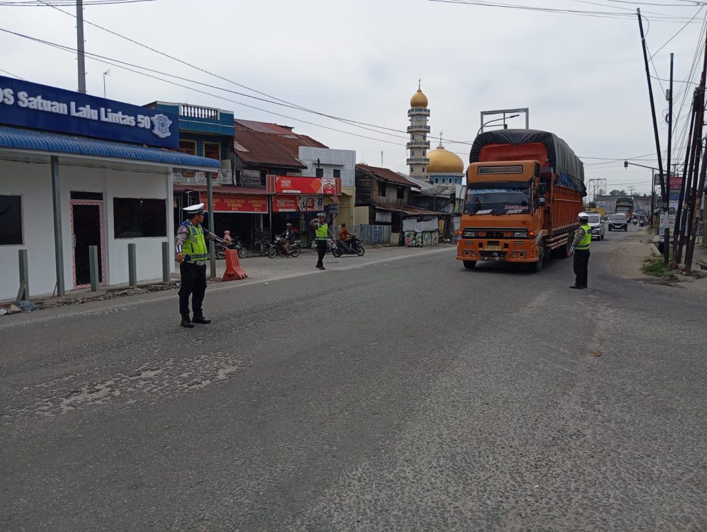 Personil Sat Lantas Polres Batu Bara melaksanakan pengaturan lalu lintas di beberapa titik di wilayah hukum Polres Batu Bara, pada Minggu, 9 November 2025, pukul 17.00 WIB s/d selesai.