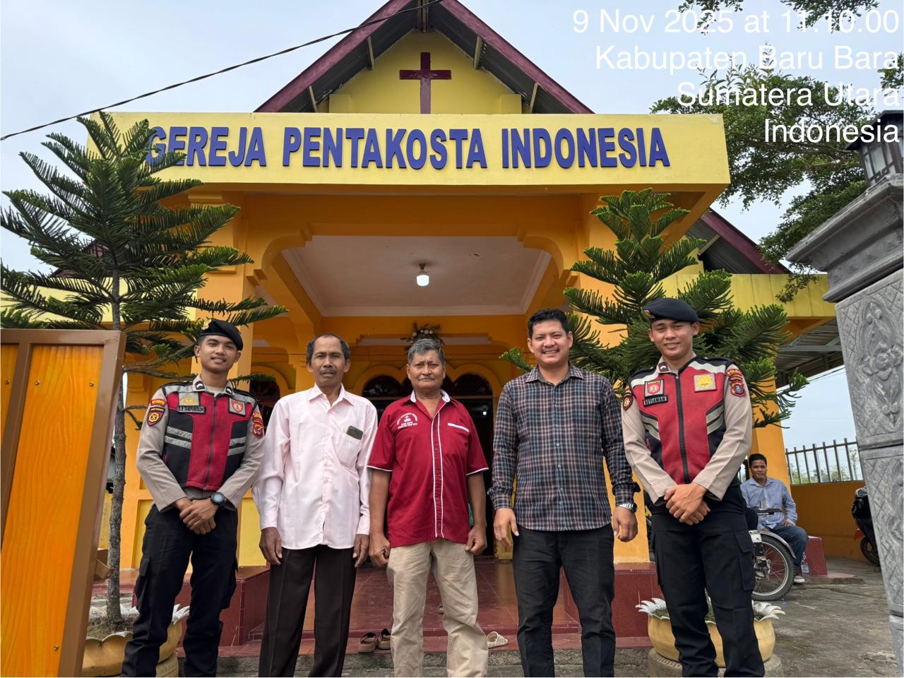 Personil Sat Sabhara Polres Batu Bara melaksanakan patroli dan pengamanan gereja-gereja di wilayah hukum Polres Batu Bara, pada Minggu, 9 November 2025.