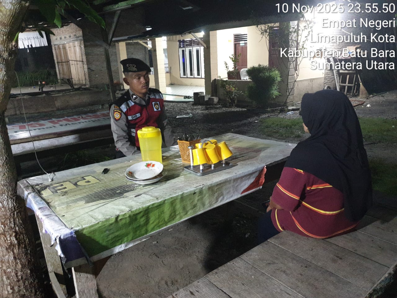 Kegiatan ini dilaksanakan di Warung Buk Selena Simpang Dolok, dengan memberikan himbauan kepada masyarakat agar tidak selalu gampang percaya terhadap isu-isu kejahatan yang beredar tanpa adanya kepastian hukum yang sah dan tetap selalu waspada dalam setiap situasi. Selain itu, masyarakat juga diimbau untuk melaporkan ke Polres Batu Bara melalui Call Center 110 jika mengalami intimidasi dari premanisme dan terjadi pungli.