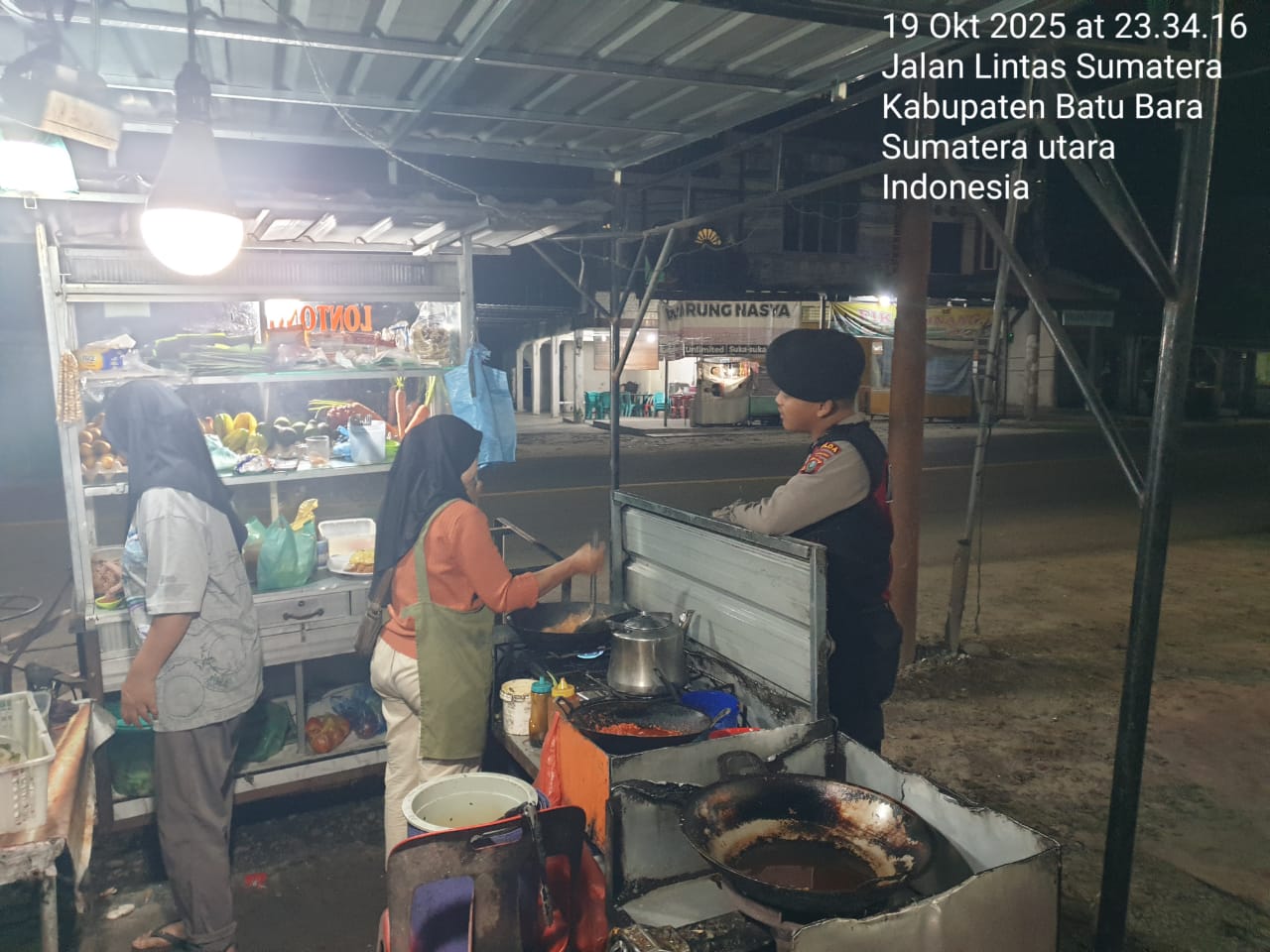 Satuan Samapta (Sat Samapta) Polres Batu Bara melaksanakan kegiatan Cooling System dengan memberikan himbauan dan pesan Kamtibmas kepada masyarakat di Warung Buk Aci pada Minggu (19/10/2025) malam.