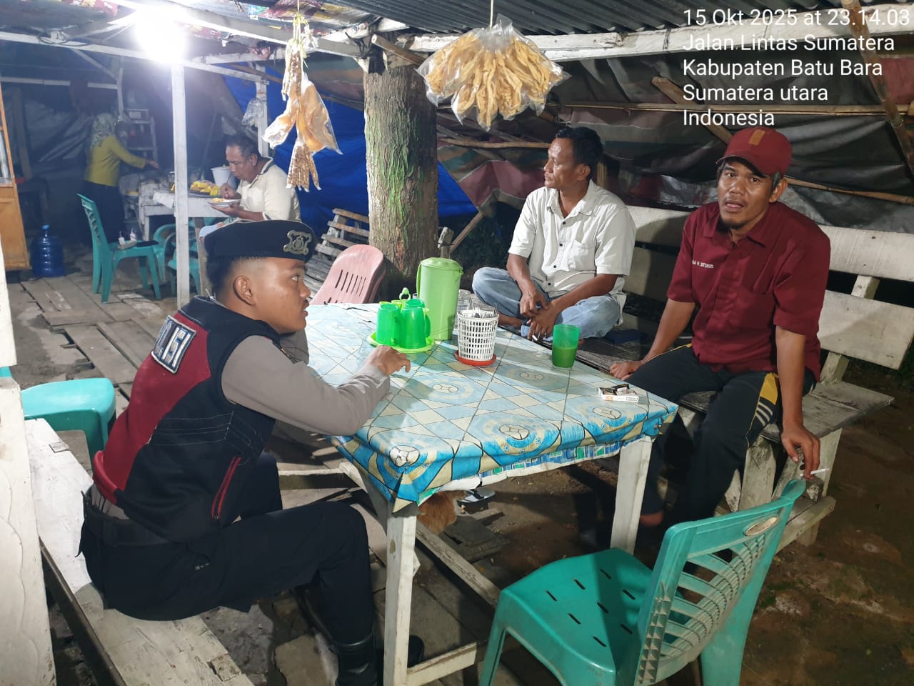 Satuan Samapta Polres Batu Bara melaksanakan kegiatan Cooling System dengan memberikan himbauan dan pesan-pesan Kamtibmas kepada masyarakat di wilayah hukum Polres Batu Bara pada Rabu (15/10/2025) malam.