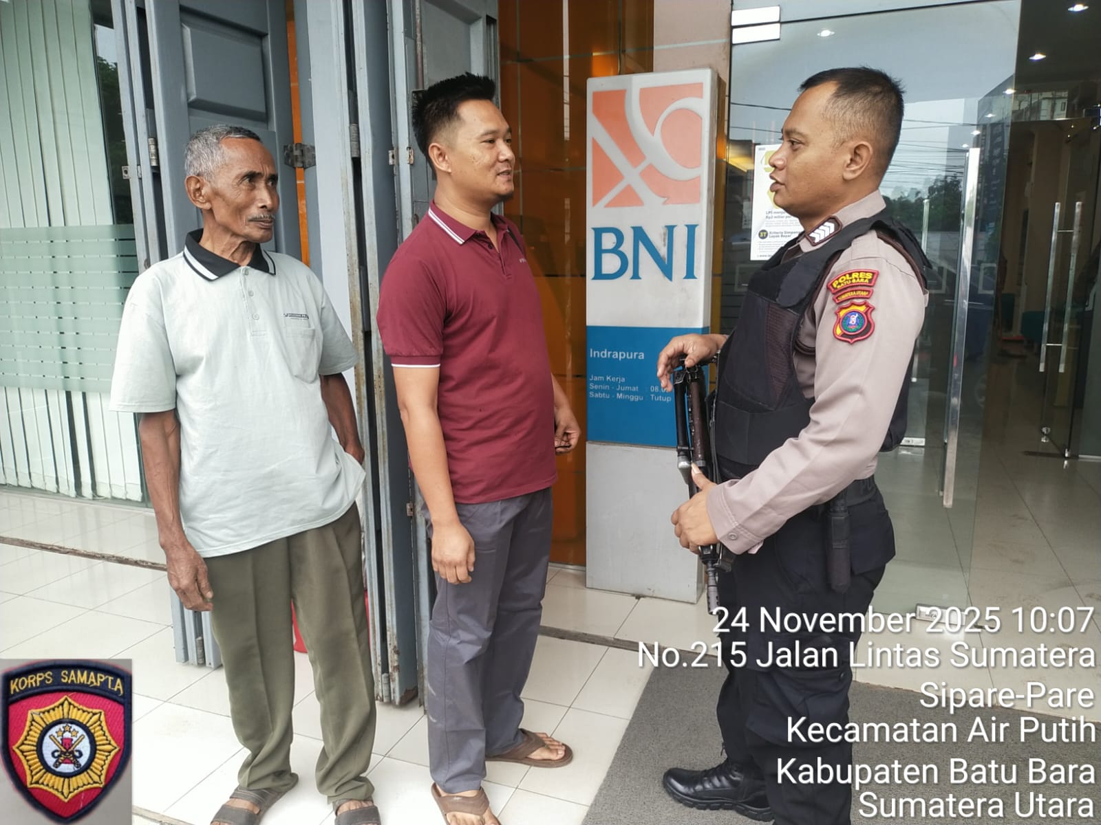 Personil Sat Samapta Polres Batu Bara melaksanakan giat pengamanan objek vital perbankan di Kabupaten Batu Bara, Senin (24/11/2025), pukul 09.00 WIB. Kegiatan ini bertujuan untuk menjaga keamanan dan ketertiban di sekitar objek vital perbankan, serta mencegah terjadinya tindak kejahatan.