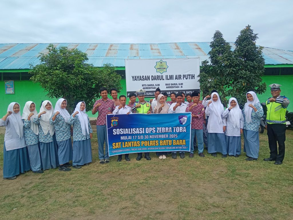 Personil Satlantas Polres Batu Bara melaksanakan kegiatan Dikmas Lalu Lintas di MAS MATRASA ALIYA SWASTA DARUL ALHIKMI AIR PUTIH, Rabu (26/11/2025) pukul 11.00 WIB s/d selesai. Kegiatan ini merupakan bagian dari Operasi Zebra Toba 2025 dan bertujuan untuk meningkatkan kesadaran masyarakat akan pentingnya keselamatan berlalu lintas.