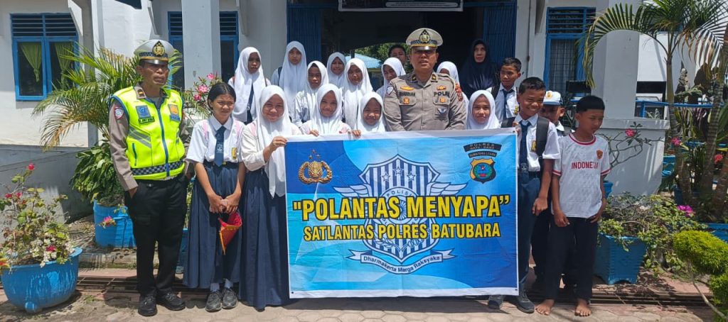 Satlantas Polres Batu Bara melaksanakan kegiatan “Polantas Menyapa” dengan memberikan sosialisasi dan himbauan tertib berlalu lintas kepada siswa/i SMP Negeri 1 Lima Puluh. Kegiatan ini dilaksanakan pada Selasa, 28 Oktober 2025, pukul 11.30 WIB hingga selesai.