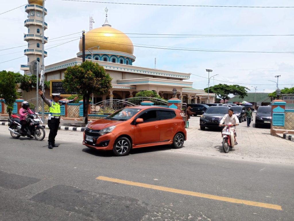 Personil Satlantas Polres Batu Bara melakukan pengaturan lalin di tiga lokasi mesjid, yaitu Mesjid Al Munawarah Sipare Pare, Mesjid Jamiq Lima Puluh, dan Mesjid Istiqomah Sei Balai. Kegiatan ini dilaksanakan mulai pukul 12.40 WIB hingga selesai.
