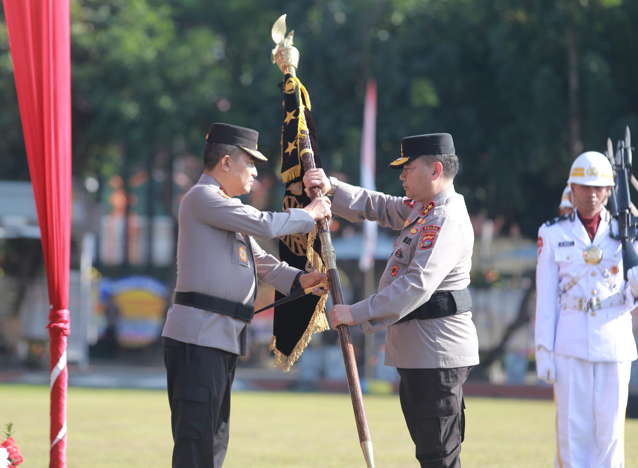 Mataram NTB – Upacara Serah Terima Pataka Kapolda NTB dari Irjen Pol. Drs. Umar Faruq SH., M. Hum., kepada Irjen Pol. Hadi Gunawan SH., SIK., yang berlangsung di Lapangan Bhara Daksa Polda NTB, Rabu (02/10/2024).