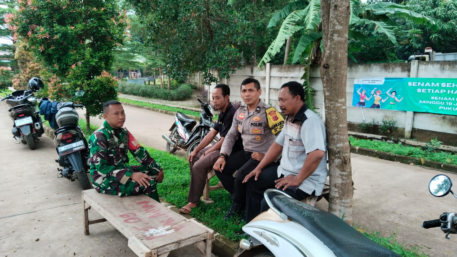 anggota Bhabinkamtibmas Desa Jatisari melakukan berbagai upaya untuk mewujudkan kamtibmas yang aman dan kondusif salah satunya dengan melaksanakan sambang kamtibmas bertemu keamanan Perum. Sinergy Residence, Selasa (18/02/2025)