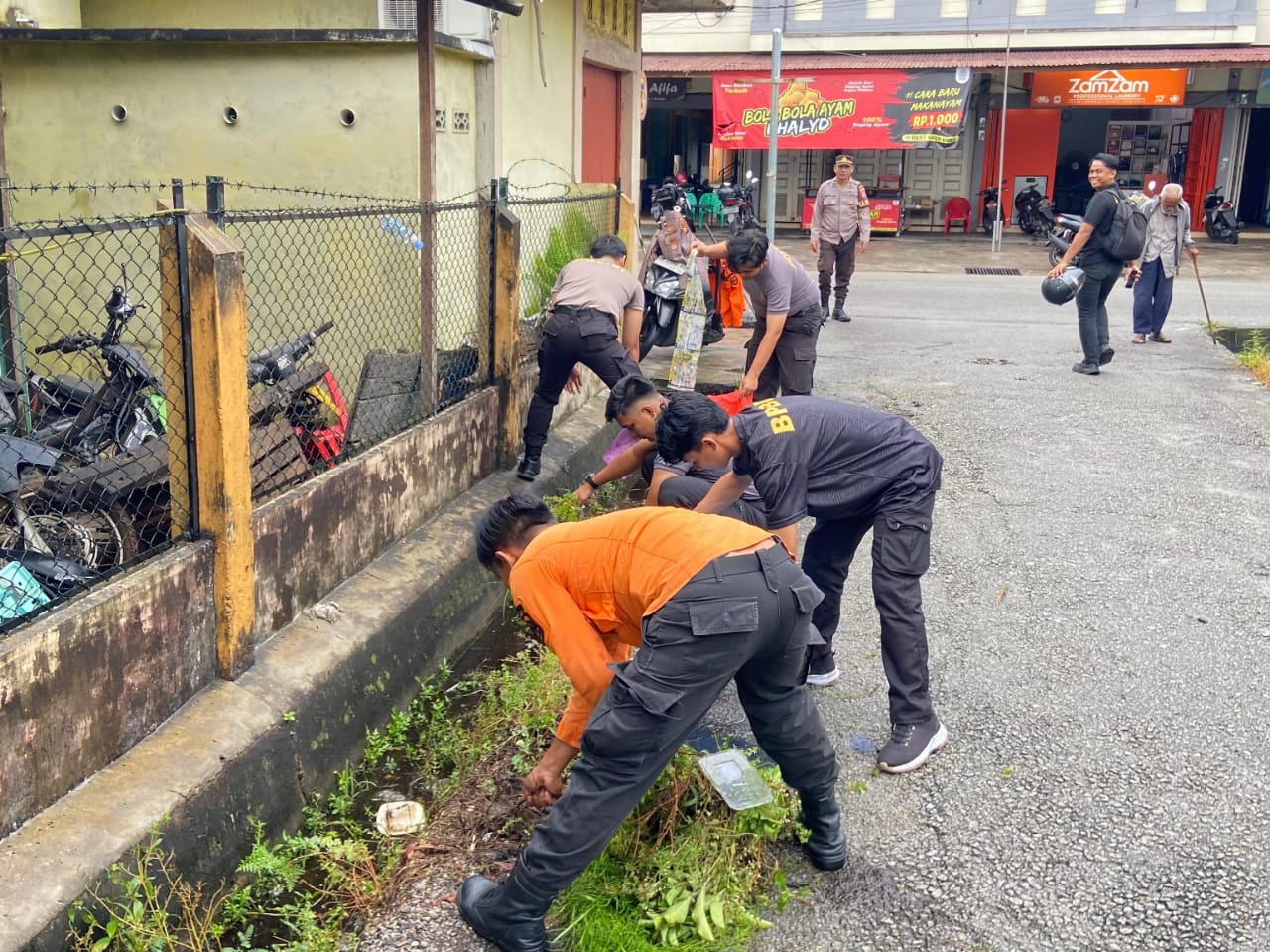 ” Benar Pagi tadi kami membersihkan Jalan Banglas, Jalan Kartini di Simp. 4 Family Mart, juga Jalan Banglas Jalan Teladan, Jalan Inpres, Jalan Sempaya Jalan Pusara dan Jalan Dorak,”Kata Kapolres Kepulauan Meranti AKBP Aldi Alfa saat dijumpai.