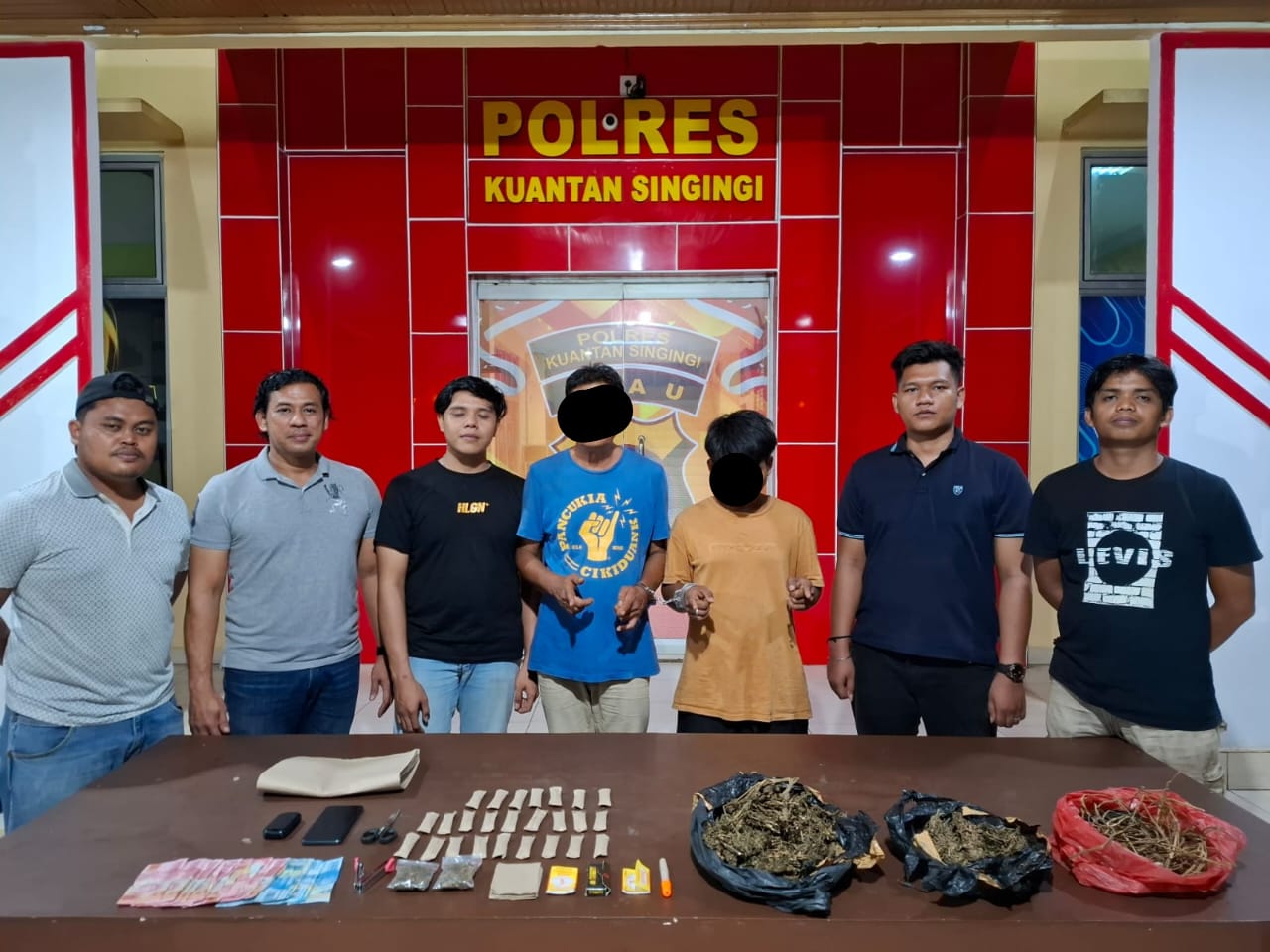 Setelah penangkapan dan penggeledahan, tersangka AF dan KA beserta barang bukti langsung dibawa ke Mapolres Kuantan Singingi untuk proses penyelidikan lebih lanjut. Berdasarkan hasil tes urine, kedua tersangka dinyatakan positif mengandung THC, senyawa yang terdapat dalam ganja.
