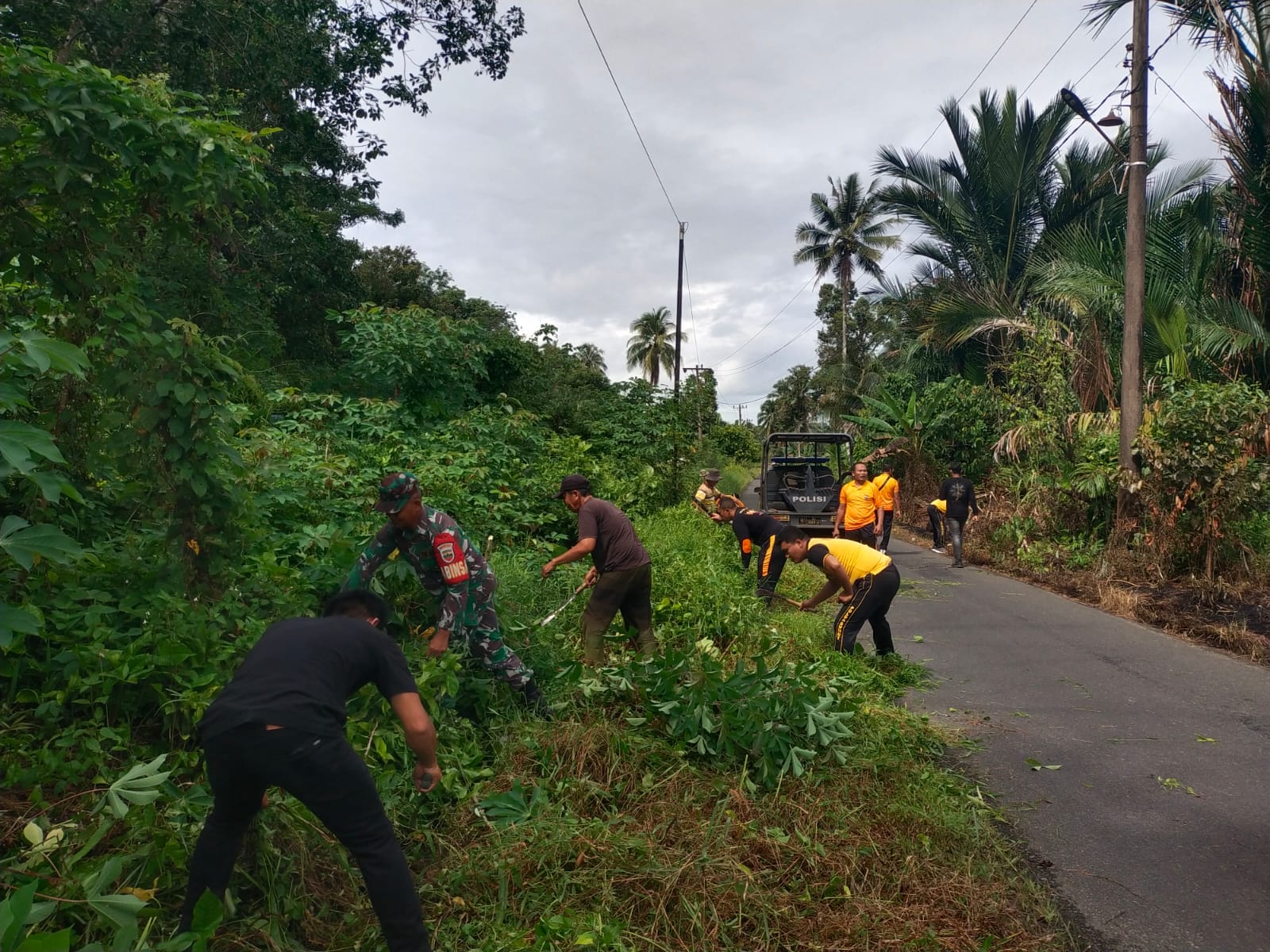 Tapteng-Babinsa Koramil 04/Pinangsori Serda H. Tumanggor bersama masyarakat melaksanakan gotong royong pembersihan ruas kanan kiri jalan Desa Simanosor Kecamatan Sibabangun, Kab. Tapanuli Tengah Kamis (29/05/2025).